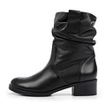 Модные укороченные сапоги с голенищем гармошкой в универсальном черном оттенке. Верх выполнен из зернистой натуральной кожи. Подкладка и стелька утеплены мехом, который отличается своими согревающими свойствами. Утолщенная подошва из материала ТЭП отлиается гибкостью, прочностью и хорошим сцеплением с поверхностью.