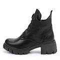 Настоящие модницы оценят демисезонные ботинки из натуральной кожи теленка. Пара утеплена ворсином и хорошо согреет ноги даже в сырую и очень прохладную погоду. Модель в черном цвете с интересной формой голенища – по бокам оно ниже, чем спереди и сзади. Немного дерзости паре придает массивная подошва с протектором и каблуком.