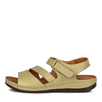 Комфортные летние босоножки бежевого цвета. Верх модели, подкладка и стелька изготовлены из мягкой натуральной кожи. Женские сандалии дополнены эластичной резинкой и удобной застежкой на липучку. Гибкая подошва обеспечивает комфортную поддержку стоп.