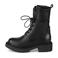 Демисезонные женские ботинки выглядят креативно и свежо несмотря на тотальный черный цвет. Пара из натуральной кожи с подкладкой из ворсина на прочной толстой подошве с протектором. Изюминка модели – шнурки, обрамляющие голенище. Для быстрого надевания обуви предусмотрена молния.