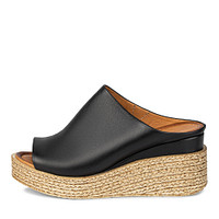 Летние сабо на высокой платформе (высота под пяткой – 6,9 см). Верх и подкладка выполнены из кожи, подошва – полиуретановая, очень легкая и устойчивая к истиранию. Она имитирует плетение из соломки, хорошо дополняя однотонный сдержанный верх модели. Сабо закрывают среднюю часть стопы, фиксируя ее в комфортном положении.