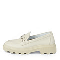 Стильные бежевые лоферы на массивной платформе. Верх из натуральной кожи устойчив к внешним воздействиям. Подкладка и стелька из нежной шевро обеспечивает комфорт стоп в процессе носки. Высокая полиуретановая подошва отлично амортизирует нагрузку на ноги.