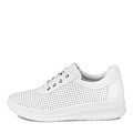Лаконичные белые кроссовки со сквозной перфорацией. Верх выполнен из натуральной кожи, а подкладки и стельки - из нежной шевро. Посадку обуви можно самостоятельно отрегулировать шнурками. Высокая полиуретановая подошва отличается лёгкостью и эластичностью, что облегчает толчковую функцию стопы.