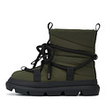 Футуристичные дутики дополнили шнуровкой, не позволяющей снегу попадать внутрь, выполнили из прочного текстиля. Цвет модели - хаки. Благодаря качественной подкладке из натуральной шерсти, которая не сбивается и не теряет свойств, зимняя пара надежно защищает стопы от холода. Широкая подошва с протектором изготовлена из ТЭП.
