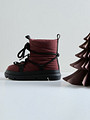 Футуристичные дутики дополнили шнуровкой, не позволяющей снегу попадать внутрь, выполнили из прочного текстиля. Цвет зимней модели - бордовый. Подкладка из натуральной шерсти, не сбивается и не теряет свойств, надежно защищает от холода. Широкая подошва с протектором изготовлена из ТЭП.