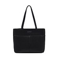 Минималистичный черный тоут с удобными ручками. Верх выполнен из матовой искусственной кожи, подкладка изготовлена из прочного текстиля. Модель с одним вместительным отделением и карманами для мелочей. Сумка гармонично дополнит повседневные образы.