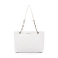 Стильная белая сумка. Модель выполнена из искусственной кожи со имитацией стеганой фактуры. Внутри - два просторных отделения и карман на молнии для мелочей. Две ручки на цепочке помогают носить сумку с комфортом.