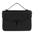 Геометричная черная сумка из матовой искусственной кожи. Одно вместительное отделение и удобные карманы для мелочей позволяют идеально организовать пространство внутри сумки и с комфортом поддерживать порядок в ней. Практичная ручка и съемный плечевой ремень позволяют носить аксессуар разными способами. Модель отлично подойдет для повседневных образов.