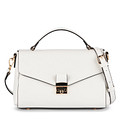 Архитектурная белая сумка из матовой искусственной кожи. Модель с одним вместительным отделением и небольшими карманами для мелочей. Сумка гармонично дополнит повседневные образы.