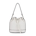 Трендовая белая сумка-ведро из матовой искусственной кожи. Модель с прочной текстильной подкладкой и шнуровкой. Внутри одно вместительное отделение и удобные карманы для мелочей. Широкая ручка позволяет носить сумку разными способами.