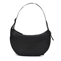 Стильная сумка хобо в классическом черном исполнении. Внутри одно отделение с боковыми карманами для мелочей. Материал верха - современная искусственная кожа. Широкий ремень через плечо добавляет модели спортивного шика и не соскальзывает с одежды. Модель застегивается на молнию.