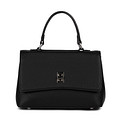 Графичная черная сумка из искусственной кожи с эффектной отстрочкой. Модель дополнена короткой ручкой и длинным плечевым ремнем, которые позволяют носить сумку разными способами. Внутри расположены два небольших отделения на молнии и карманы для мелочей, помогающие удобно организовать пространство. В качестве застежки используется поворотный замок.