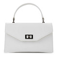 Женская сумка кросс-боди из экокожи с клапаном и поворотным замком. Компактная и стильная модель с съемным ремешком (120 см) и карманами для телефона и документов. Подходит для повседневной носки, работы и учебы. Универсальная, легкая сумка молочного цвета с тиснением под кожу рептилии. Подкладка из искусственной кожи, фурнитура серебристого цвета.