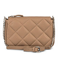 Вместительная бежевая женская сумка-кроссбоди с трендовой отстрочкой. Модель выполнена из кожи из спилка со стеганой фактурой и снабжена прочной текстильной подкладкой. Длинная ручка с элементами цепочки украсит образ и позволяет комфортно носить сумку на плече. Внутри - одно большое отделение и практичные карманы для мелочей. Удобная застежка на молнию.