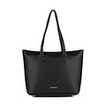 Графичный черный шопер из искусственной кожи. Удобные длинные ручки позволяют носить сумку на плече, на предплечье или в руках. Внутри — одно вместительное отделение и практичные карманы для мелочей, помогающие с легкостью поддерживать порядок в сумке. Модель с застежкой на молнию.