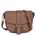 Минималистичная бежевая кроссбоди в стиле сумки-седла. Верх выполнен из искусственной кожи, подкладка — прочный текстиль. Модель с длинным съемным ремешком. Застежка на молнию и магнитный замок. Вместительная сумка с внешним мини-карманом на молнии.