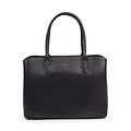 Лаконичная сумка-тоут из натуральной кожи с мелкозернистой фактурой. Подкладка выполнена из прочного текстиля. Черная женская сумка включает два небольших отделения, разделенных вместительным карманом на молнии. Модель дополнена короткими ручками и съемным плечевым ремнем. Изделие отлично впишется в базовый гардероб в классическом или casual-стиле.