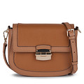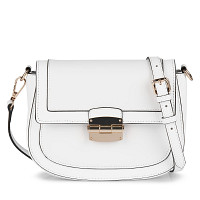 Графичная бежевая сумка-кроссбоди. Верх выполнен из гладкой натуральной кожи, подкладка изготовлена из прочного текстиля. Застежка на удобный магнитный замок. Лаконичный дизайн дополняет позолоченная фурнитура. В комплекте съемный плечевой ремень.