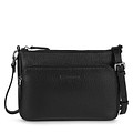 Маленькая черная сумка с рельефным логотипом. Верх выполнен из фактурной натуральной кожи Модель с длинным изящным ремешком. Лаконичная застежка на молнию.