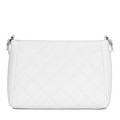 Актуальная белая сумка-кроссбоди. Модель выполнена из стеганой натуральной кожи. Внутри - одно текстильное отделение и карман для мелочей. Длинный тонкий ремень позволяет комфортно носить сумку через плечо. Удобная застежка на молнию.