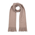 Бежевый женский палантин из мягкого фактурного полиэстера. Шарф декорирован лаконичной бахромой и отлично дополнит образы с пальто, куртками или пуховиком. Размеры изделия: ширина — 67 см, длина — 190 см.