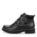 Стильные ботинки в черном цвете с декоративными пряжками. Верх выполнен из комбинации натуральной и современной искусственной кожи. Мягкие подкладка и стелька из деликатного велюра создают комфорт стоп. Прочная резиновая подошва обеспечивает отличное сцепление с поверхностью. Модель фиксируется шнурками и удобно застегивается на молнию.