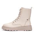 Стильные бежевые ботинки на платформе. Кожаный верх надежно защищает ноги от ветра и влаги. Подкладка и стелька из дышащего текстиля обеспечивают комфорт стоп в течение дня. Высокая подошва из материала ЭВА с выраженными протекторами отлично амортизирует нагрузку на стопы. Модель фиксируется шнурками и удобно застегивается на молнию.