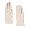 Невероятно нежные и мягкие перчатки женские осенние выполнены из натуральной кожи шевро белого цвета. Перчатки кожаные идеально облегают ладонь, визуально ее удлиняя, подчеркивая красоту ее линий. Перчатки на осень теплые, приятно ощущаются и не сковывают движений. Натуральная кожа пластичная, не боится перепадов температур, надолго сохраняет первоначальный внешний вид. На перчатках не образуются заломы и трещины, эластичная кожа обладает высокой износостойкостью, но следует избегать воздействия воды на натуральную кожу. Перчатки утеплены подкладкой из натуральной шерсти бежевого цвета, которая обеспечивает оптимальный воздухообмен и влагоотведение, сохраняет руки в тепле. Лицевая сторона перчаток декорирована фигурными строчками, которые придают модели выразительность. На тыльной стороне расположена короткая резинка, которая обеспечивает идеальную посадку. Перчатки кожаные утепленные прекрасно подходят для осенней непогоды, надежно защищают руки от холода и ветра. Перчатки кожаные смотрятся элегантно и стильно, это настоящая классика, которая будет актуальна всегда. Перчатки кожаные белые идеально дополняют гардероб в городском стиле, придают образу утонченность и особый шарм. Перчатки осенние женские подходят для прогулки и поездки, романтических встреч и посещения мероприятий на открытом воздухе. В любой ситуации женщина будет выглядеть безупречно и элегантно в белых кожаных перчатках.