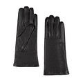 Черные перчатки женские осенние выполнены из мягкой натуральной кожи шевро. Перчатки кожаные идеально облегают ладонь, визуально ее удлиняя, подчеркивая красоту ее линий. Перчатки на осень теплые, приятно ощущаются и не сковывают движений. Натуральная кожа пластичная, не боится перепадов температур, надолго сохраняет первоначальный внешний вид. На перчатках не образуются заломы и трещины, эластичная кожа обладает высокой износостойкостью, но следует избегать воздействия воды на натуральную кожу. Перчатки утеплены подкладкой из натуральной шерсти бежевого цвета, которая обеспечивает оптимальный воздухообмен и влагоотведение, сохраняет руки в тепле. На лицевой стороне расположено декоративное фигурное плетение, которое придает модели выразительность. Перчатки кожаные утепленные прекрасно подходят для осенней непогоды, надежно защищают руки от холода и ветра. Перчатки кожаные смотрятся элегантно и стильно, это настоящая классика, которая будет актуальна всегда. Перчатки кожаные черные идеально дополняют гардероб в городском стиле, придают образу утонченность и особый шарм. Перчатки осенние женские подходят для прогулки и поездки, романтических встреч и посещения мероприятий на открытом воздухе. В любой ситуации женщина будет выглядеть безупречно и элегантно в черных кожаных перчатках.