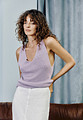 Элегантный топ тонкой вязки сочетает в себе минималистичный дизайн и высокое качество материала. Выполнен из мягкой пряжи с деликатным блеском, состоящей из смеси вискозы и акрила.