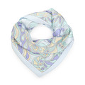 Платок женский на голову и на шею средний квадратный голубой можно использовать как легкий шарф. Весной и осенью шейный платок защитит от прохлады, красиво смотрится как повязка на голову, на волосы или на сумку. Летом модельный платок укроет голову и плечи от яркого солнца, он пригодится в городе и на отдыхе. Легкий головной платок на весну и лето подойдет как бандана, тюрбан или чалма. Модный летний или весенний платок можно использовать как накидку на плечи. Красивый платок с принтом из цветов легко комбинируется с нарядами различных стилей. Подходит изделие под пальто и плащ, под куртку и шубу. Средний платок пригодится как косынка, просто сложите его вдвое по диагонали. Стильный аксессуар из полиэстера напоминает шелковый платок, его приятно преподнести в подарок бабушке, маме, сестре на 8 марта и день рождения, на 8 Марта и на Новый год, на Рождество и на Пасху. Изделие может подойти как религиозный православный платок для храма, в церковь, в мусульманскую мечеть. Изготовлен полупрозрачный платок из ткани, состоящей на 100 процентов из полиэстера. Размер изделия 70 х 70 см. Вес аксессуара 52 гр. Платок можно стирать в машинке при бережном режиме.