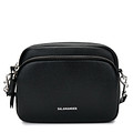Лаконичная сумка формы камера-бэг в универсальном черном цвете. Основной материал - зернистая натуральная кожа. Внутри - одно отделение с текстильной подкладкой, а также внешний карман для необходимых мелочей. Длинный тонкий ремень помогает удобно носить сумку в стиле кросс-боди.