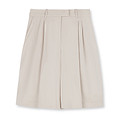 Эффектные бежевые шорты из хлопка. Широкий крой и высокая посадка формируют гармоничный силуэт. Детали: шлевки, боковые карманы, застежка на молнию и пуговицы.