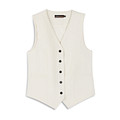 Эффектный молочный костюмный жилет приталенного кроя. Модель с V-образным вырезом и контрастными пуговицами. Жилет отлично подойдет для многослойных образов, а также может быть использован в качестве топа.
