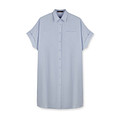 Минималистичное голубое платье-рубашка гармонично дополнит casual-образы. Модель прямого кроя с пуговицами и отложным воротником отлично подойдет для посещения офиса, прогулок, свиданий и повседневных дел. Платье из воздушного тенселя подойдет для гардероба на любой сезон.