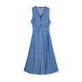 Легкий сарафан из тенселя в оттенке "деним". Модель приталенного кроя дополнена широким текстильным поясом. V-образный вырез акцентирует зону декольте и визуально делает силуэт изящнее.