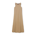 Воздушное бежевое платье без рукавов из тенселя. Модель со струящимся подолом формирует гармоничный силуэт и подойдет женщинам с любым типом фигуры.