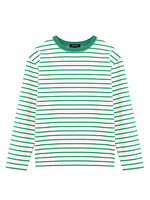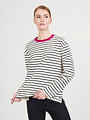 Универсальный лонгслив в классическую полоску с контрастной ярко-розовой горловиной. Модель выполнена из плотного хлопка высшего качества с добавлением эластана.