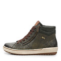 Высокие кожаные ботинки в стиле кед. Модель с комбинированным верхом: из натуральной и искусственной кожи. Подкладка изготовлена из мягкого велюра с мембраной RiekerТех, которая обеспечивает оптимальную терморегуляцию внутри обуви и предотвращает скапливание лишней влаги. Гибкая резиновая подошва отличается прочностью и легко адаптируется к движениям стопы. Ботинки со шнуровкой дополнены молнией, ускоряющей процесс фиксации обуви.