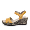 Акцентные желтые босоножки на танкетке. Верх выполнен из комбинации натуральной и искусственной кожи для оптимальной мягкости и износостойкости модели. Принтованная подошва из полиуретана отличается легкостью и хорошими амортизирующими свойствами. Модель удобно фиксируется на липучку велькро.