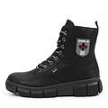 Стильные черные ботинки для настоящих модниц. Искусственная кожа верха не требует специфического ухода, шерсть и мембрана RiekerТех обеспечивают сохранение тепла без потливости ног. Умеренно толстая подошва не скользит, высокое голенище позволяет носить ботинки с юбками и платьями.