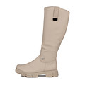 Стильные высокие сапоги на молнии. Классический дизайн модели и нежный бежевый оттенок идеально впишется в базовый гардероб. Ботинки с ремешком на толстом низком каблуке, резиновой подошве с протектором, подкладкой из шерсти с мембраной RiekerТех обеспечат оптимальную терморегуляцию и воздухообмен внутри обуви.