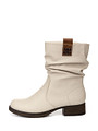 Актуальные бежевые полусапоги с трендовой складкой на голенище. Верх выполнен из искусственной кожи нового поколения и декорирован стильным ремешком. Подкладка из современного аналога шерсти и велюровые стельки обеспечивают комфорт стоп. Утолщенная резиновая подошва отличается прочностью и хорошим сцеплением с поверхностью.